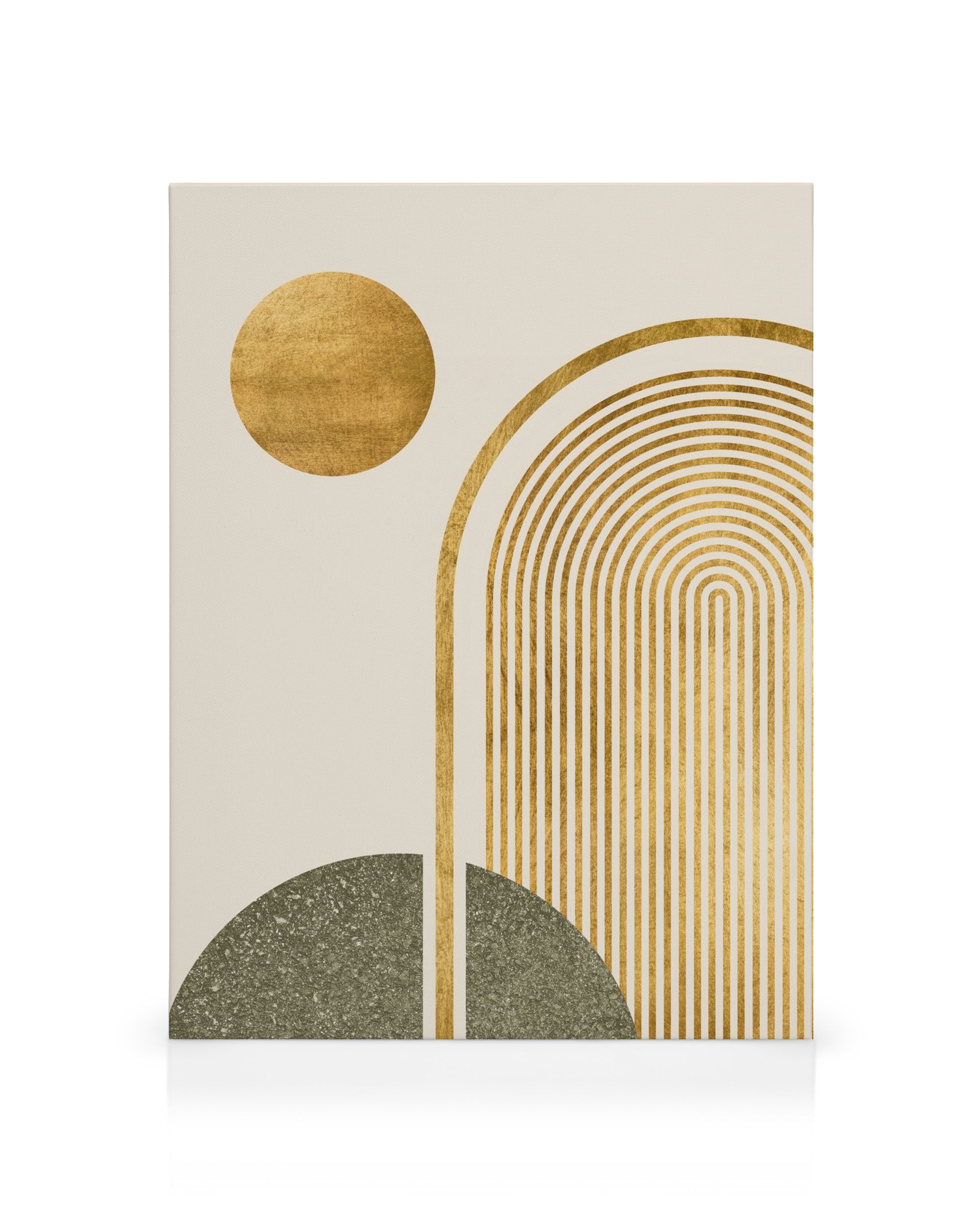 À partir de $40.46Impression sur toile abstraite avec des arches dorées, un cercle doré flottant et des demi-cercles gris sur un fond crème. Cette décoration murale minimaliste a un aspect propre et moderne qui embellira n'importe quelle décoration murale.