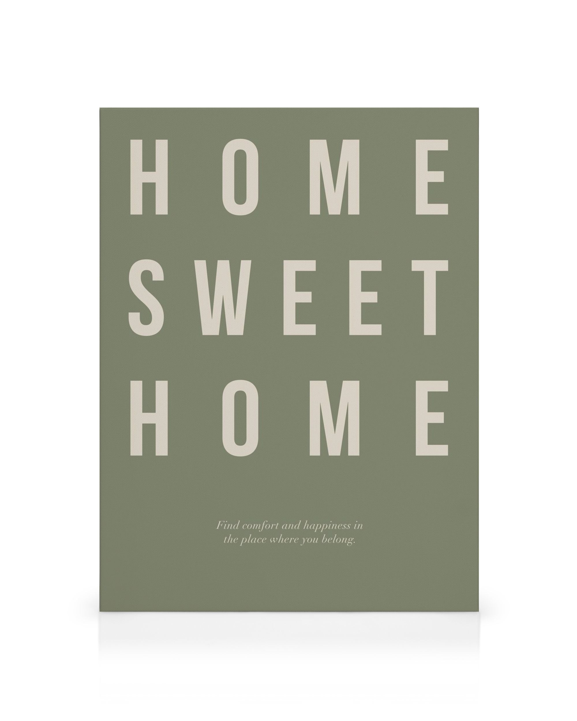 From $71.95A canvas with "HOME SWEET HOME" text in cream letters on a green background. Perfect canvas to create a warm and welcoming feel in your home.