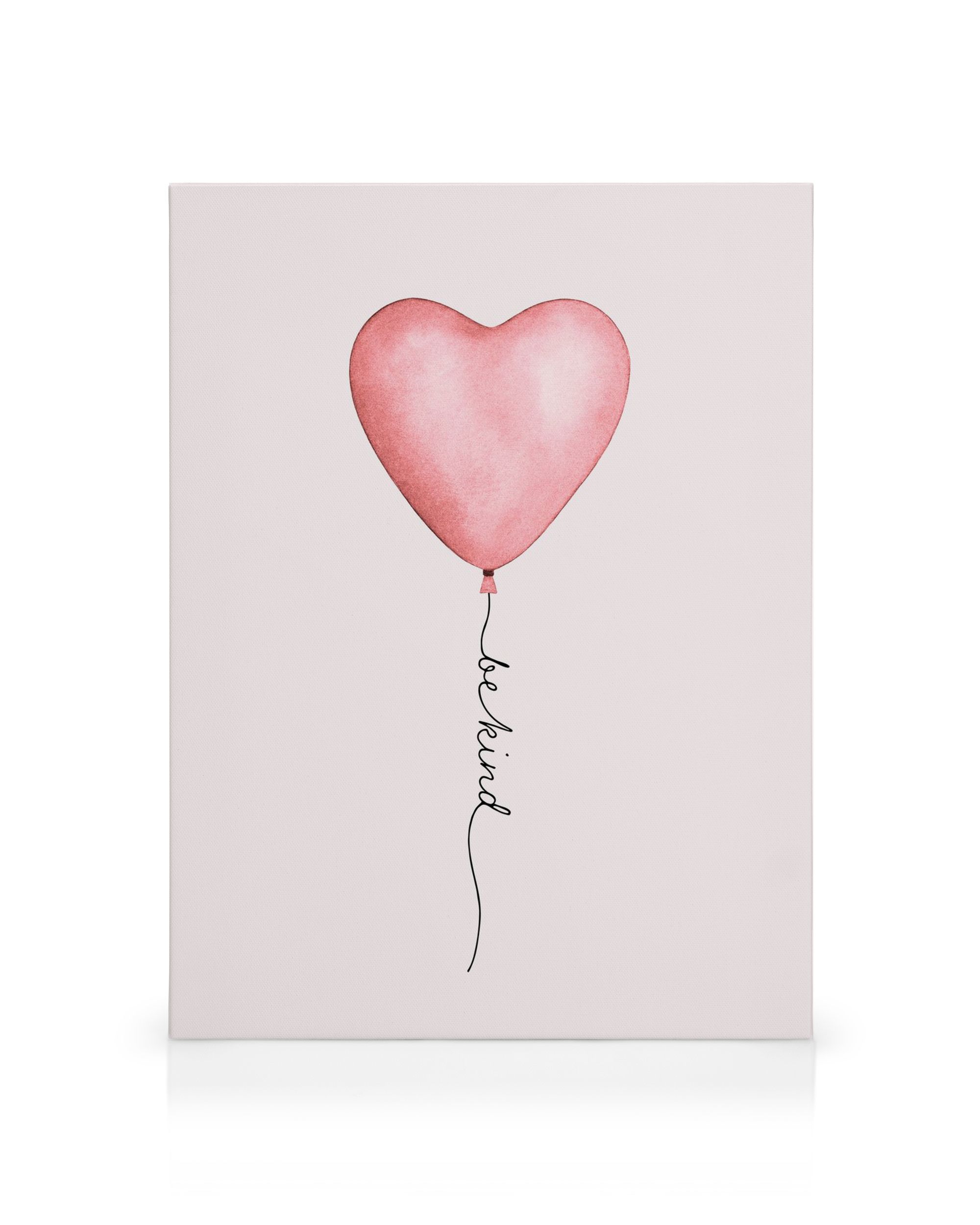 From $53.95A canvas print of a pink heart-shaped balloon with a reflective texture against a light background. The balloon's string spells out "Be Kind" in cursive, black ink. Simple and soft wall art.