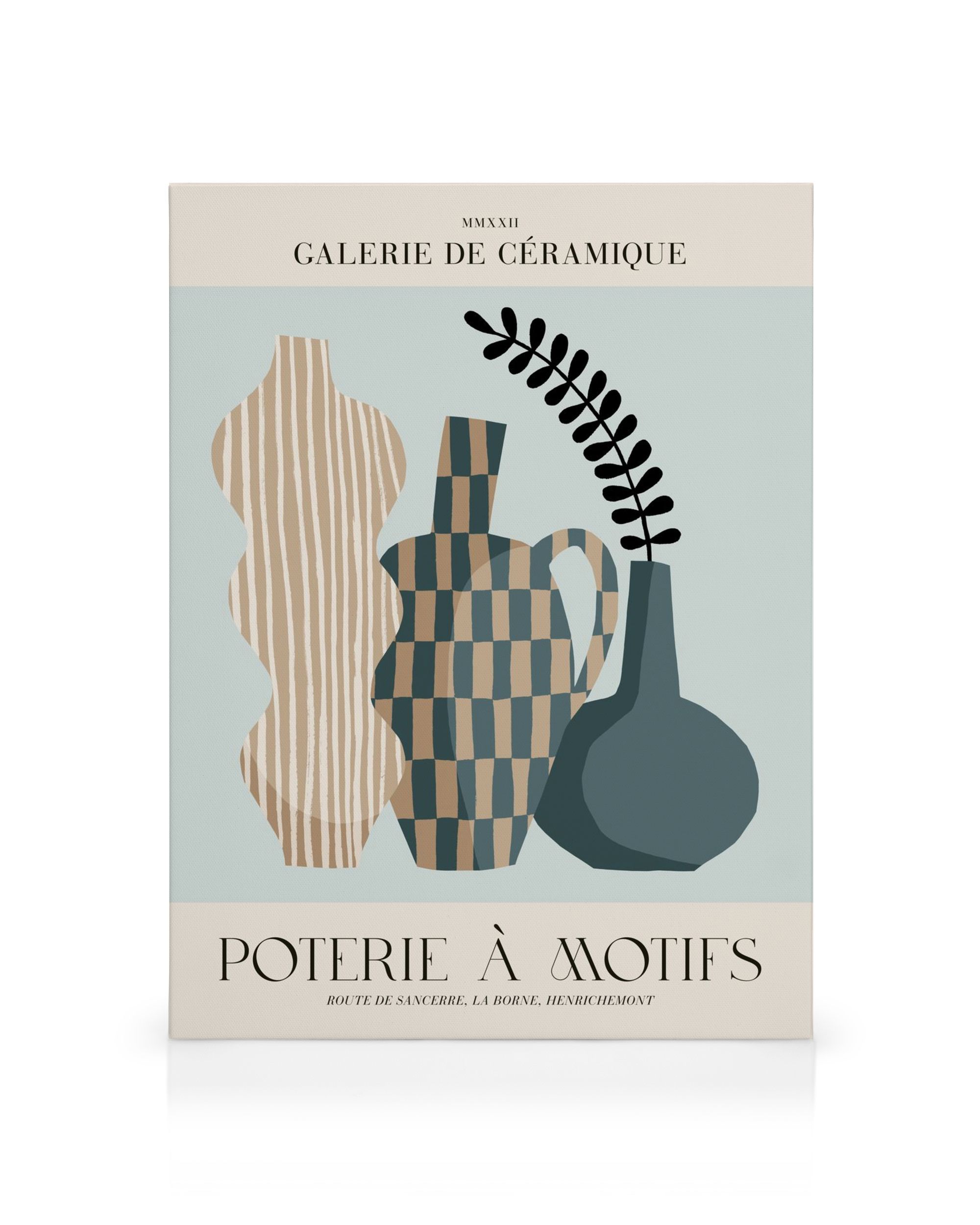 From $40.46Stylized vases on a beige and blue background. One vase has stripes, another a checkerboard pattern, and the third a leafy branch. The perfect canvas print for your home.
